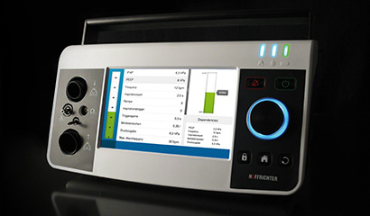 The wide, clear display guides the user comfortable through the different ventilation modes and their adaptation to the individual needs of the patients. The powerful, performance optimized blower offers high flow reserves even at maximum therapy pressure and attracts attention by an extraordinary silent operation noise. So nothing is left to be desired even with a use at home.