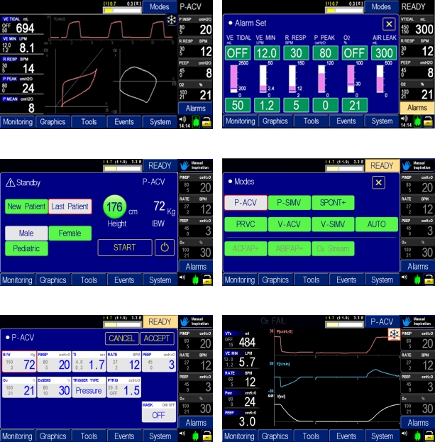 - Dual Limb : PACV, PSIMV, VACV, VSIMV, Spont+, O2 Stream, PRVC